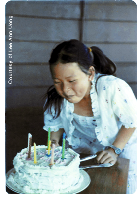 Lee Ann Uong was born Thu To Uong on August 12, 1974, the daughter of Chiu Chow Chinese living in Ben Tre, Vietnam. After the war between South and North Vietnam, her parents decided to leave. Tens of thousands of others were doing the same, fleeing years of war and political unrest in Southeast Asia. In January, 1979, the family boarded a ship called Skyluck, joining more than 2500 other refugees.