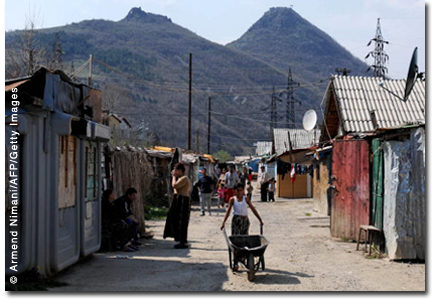 | A Roma refugee camp in Mitrovica, Kosovo. | |
