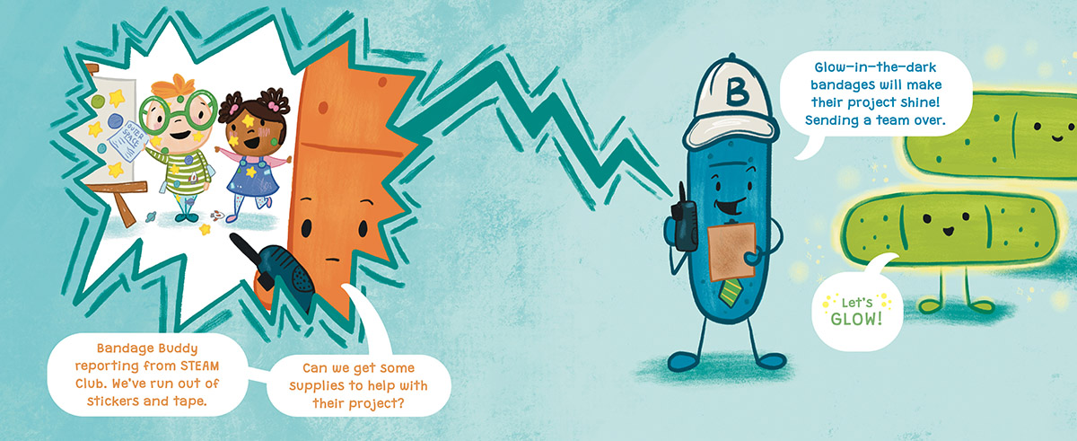 The STEAM Club ran out of glue and tape? A fashionista looking for the perfect accessory? A little kid experiencing BIG feelings? Worry not for there's a bandage or emotional support bandage for every problem, big or small!